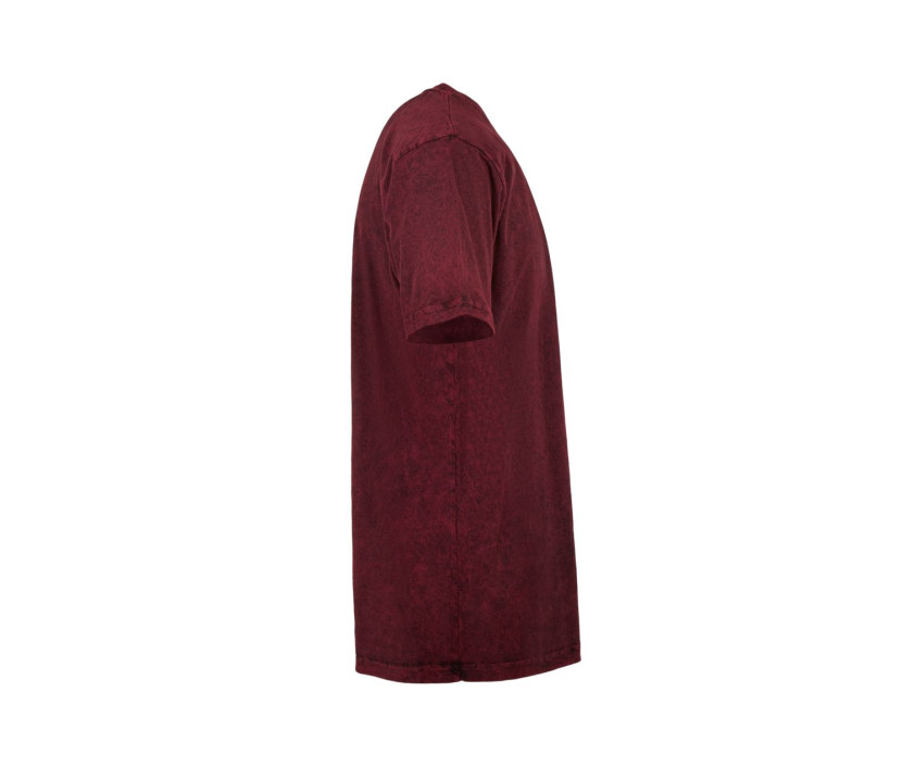 Tee-shirt délavé. Coupe classique avec col rond. Lavage spécial pour effet batik. Sans étiquette de marque, uniquement une puce de taille. Coutures latérale. Double coutures au col, manches et ourlet. Laver avec des couleurs similaires. Grâce à sa teinture et à sa finition spéciales, chaque vêtement est unique et a un aspect particulier. Les changements de couleurs et d'aspect après le lavage et les modifications du tissu sont des caractéristiques de qualité.