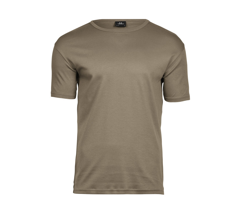 Tee-shirt homme - Coupe ajustée. Col en bord côte étroit. Double couture. Lavé aux enzymes.