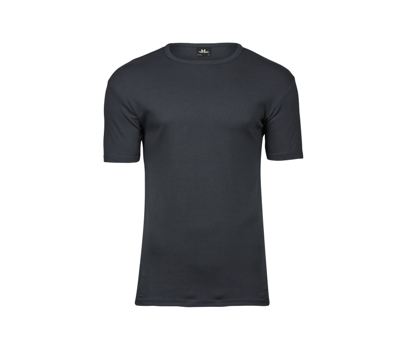 Tee-shirt homme - Coupe ajustée. Col en bord côte étroit. Double couture. Lavé aux enzymes.