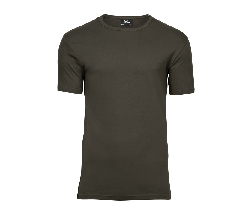Tee-shirt homme - Coupe ajustée. Col en bord côte étroit. Double couture. Lavé aux enzymes.